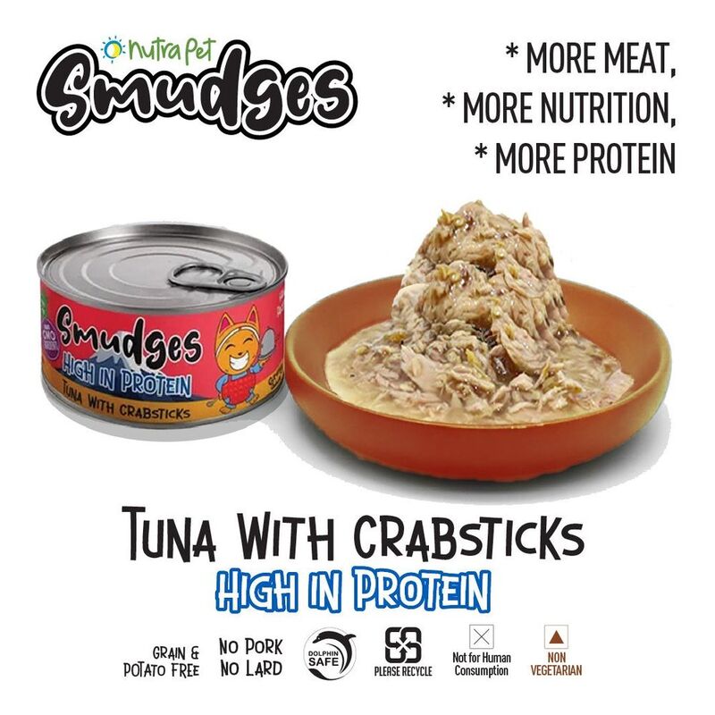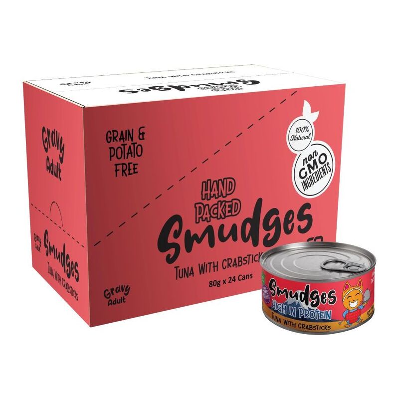 Smudges Adult cat food High in Protein - Tuna with Crabsticks in Gravy - 80g Can