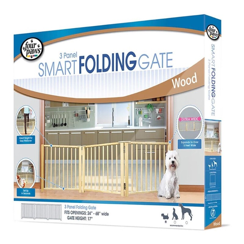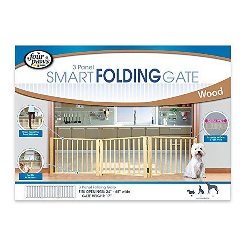 Four Paws Pet Safety Gate Free Standing 3 Panel Walk Over Wood Gate (25 x 17 Inch)