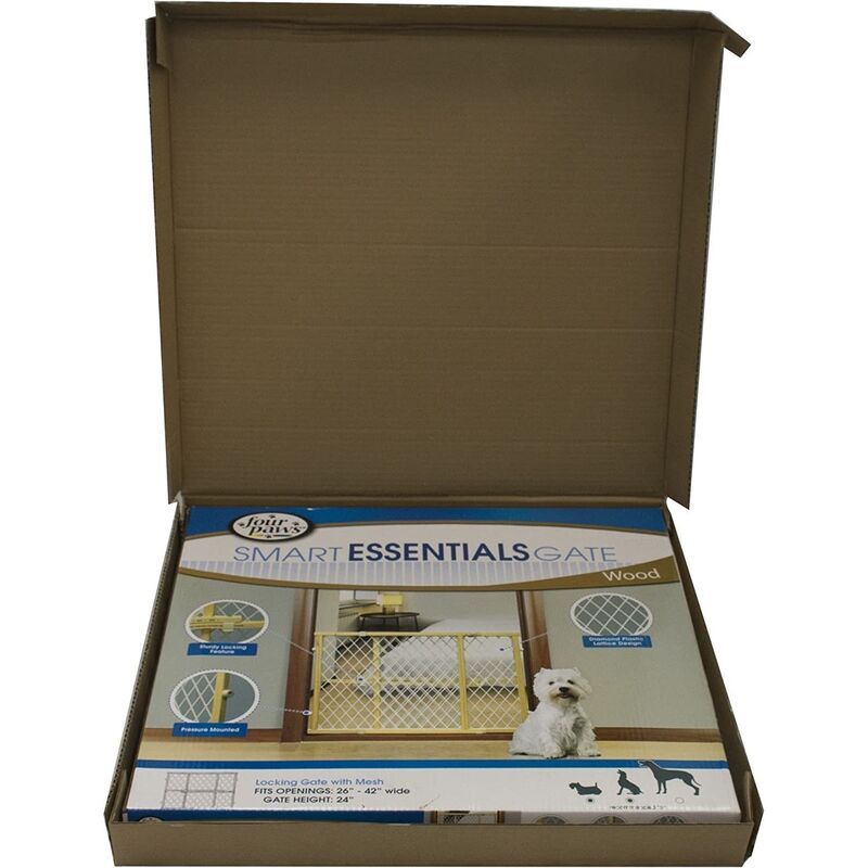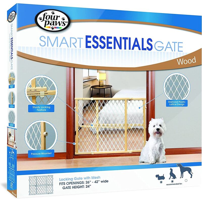 Four Paws Pet Safety Gate Wood Frame with Plastic Mesh (26 x 24 Inch)