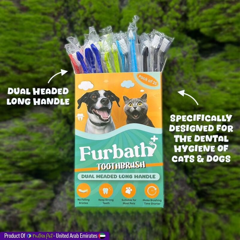 The Furbath Disposable Toothbrushes come in a pack of 25, each measuring 22 x 1.8 cm. Available in multicolors, these single-use brushes are designed for easy, convenient oral care for pets. They come in a customized box, making them perfect for maintaining your pet's dental hygiene.