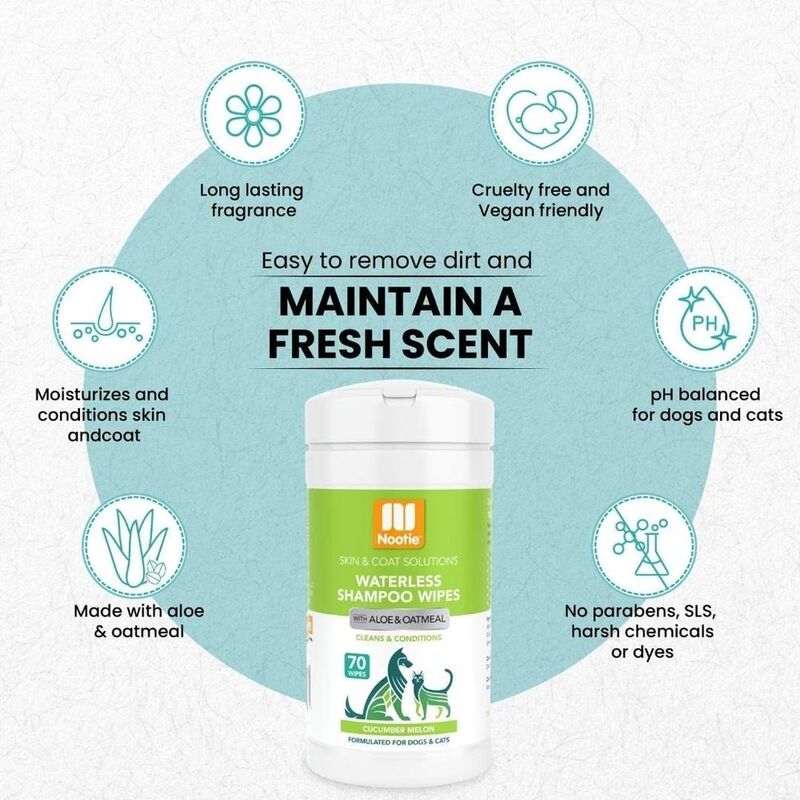 Nootie Cucumber Melon Waterless Shampoo Pet Wipes (70 Pack)