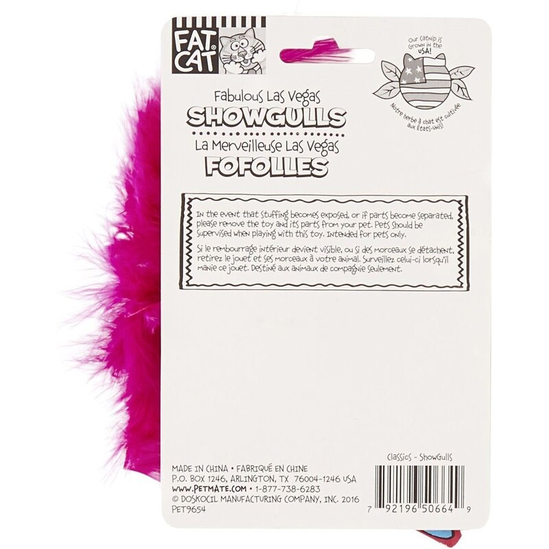Fabulous Las Vegas ShowGulls are all about da Glitz-n-Glamour, baby! Kitties just can’t resist the shimmy shimmy shake of their tail feathers. Your cat will keep calling for an encore! Enjoy the show! Contains our world famous Zoom Around the Room organic catnip. Tons of feathery fun – collect ‘em all! Pack Size: 1.3 X 3.9 X 6″