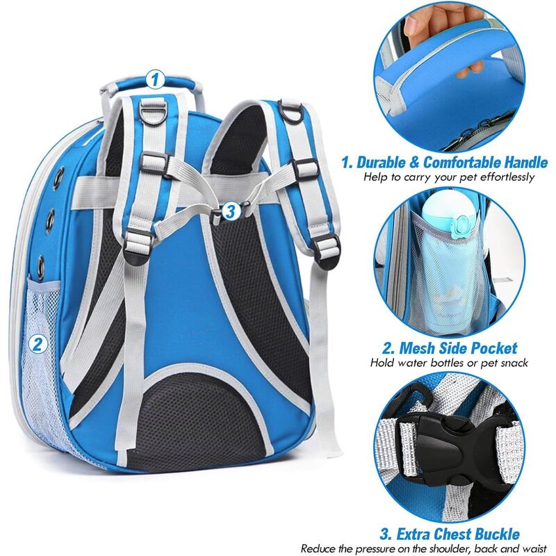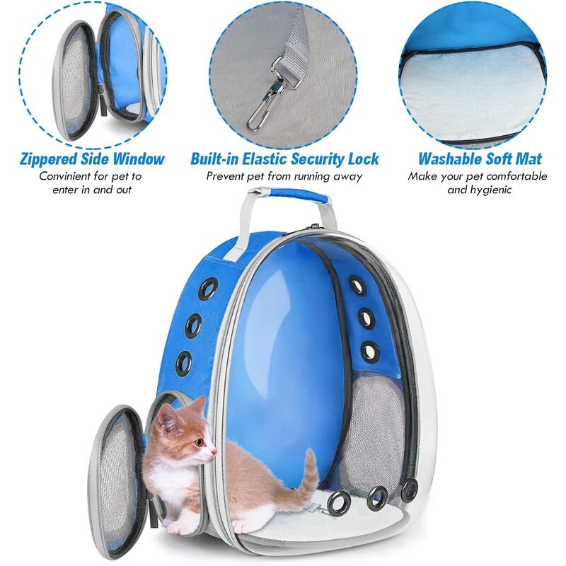 SUFFICIENT SPACE: this bubble backpack cat carrier is made of eco-friendly PVC and high-density anti-scratch fabric. 12" x 11" x 16.5" (Lx W x H), 2.7 pounds. Highly recommended to bring pets under 14.5 pounds. Ideal backpack for cats for traveling, walking, hiking, and hanging out.
