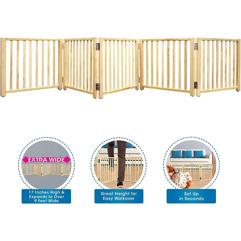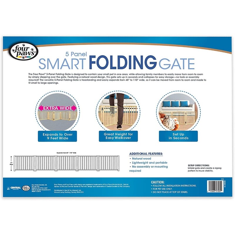 Four Paws Safety Gate Free Standing 5 Panel Walk Over Wood Gate 48-110" x 17"
