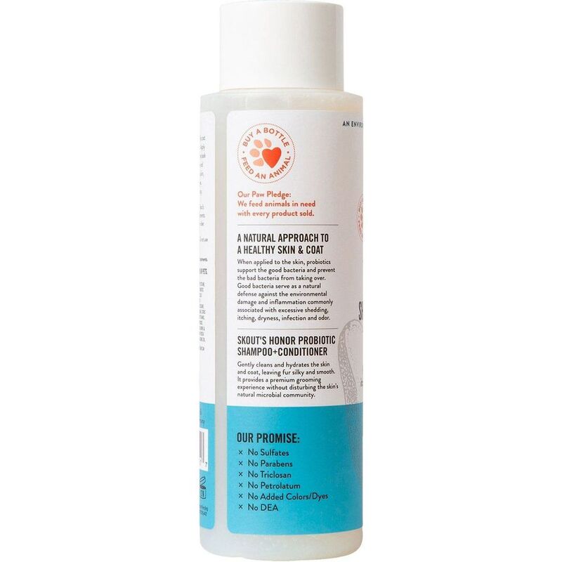 Bring out your pup’s natural beauty with Skout's Honor Probiotic Unscented Dog Shampoo & Conditioner. This hypoallergenic formula features avocado oil to clean and moisturize the coat of your furry friend while leaving his fur silky and smooth. It is infused with a live, colony-forming probiotic kefir culture that helps promote a healthy skin environment to defend against itch, odor, inflammation and hotspots. This 2-in-1 formula is also cruelty-free, sulfate-free, paraben-free and non-GMO with no colors or dyes. Skout's Honor Probiotic Unscented Dog Shampoo & Conditioner is suitable for all skin types and conditions, including those paw-tners with excessive shedding, itching, dryness, irritation and odor.