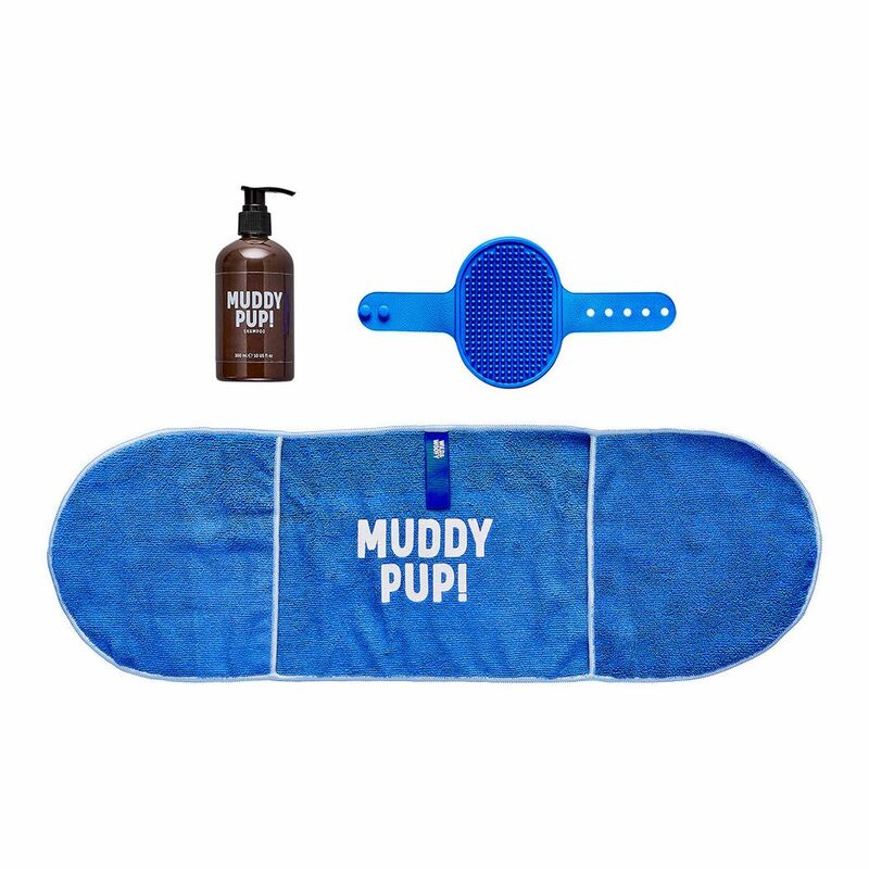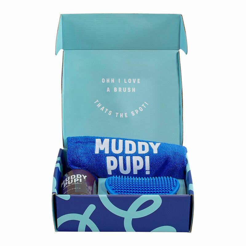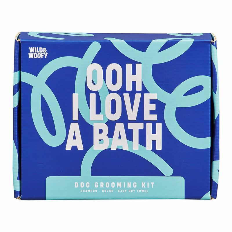 Ooh I love a bath! Get your muddy pup clean as a whistle with this Dog Grooming Kit from Wild & Woofy. Comes packaged in blue gift box with spring print that reads 'Ooh I Love a Bath'. The perfect gift for any dog owner, it comes packaged in a blue box with a fun spring print. Includes 10 fl oz Aloe Vera & Oatmeal Shampoo, brush and glove drying towel that reads 'Muddy Pup'. Comes packaged in a box measuring 7.30inch L x 9inch W x 2.70inch H.