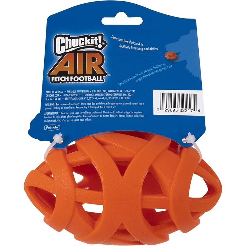 Chuckit Breathe Right Fetch Football: This fetch toy is designed to allow your dog to run farther and fetch longer, Its hollow, mesh-like design facilitates airflow into your dog's lungs while running and fetching