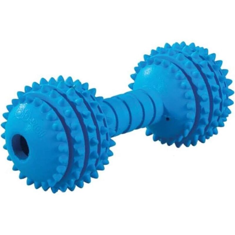 HARD RUBBER DOG TOY: This heavyweight chew toy for large dogs features textured bumps to clean off plaque & keeps dogs' teeth healthy & strong while they play. Heavy duty dog toy is ideal for fetch & tug-of-war.