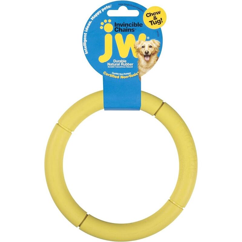 made without glue.Suitable for medium and large breed dogs The Invincible Chains Large Single is a single durable ring made from natural resilient rubber. JW's patented molding process creates ring with no seams and no glue to produce a strong long lasting toy. Tug, toss, fetch and chew the Invincible Chain will provide hours of fun for your dog. Excellent for medium and large breed dogs.