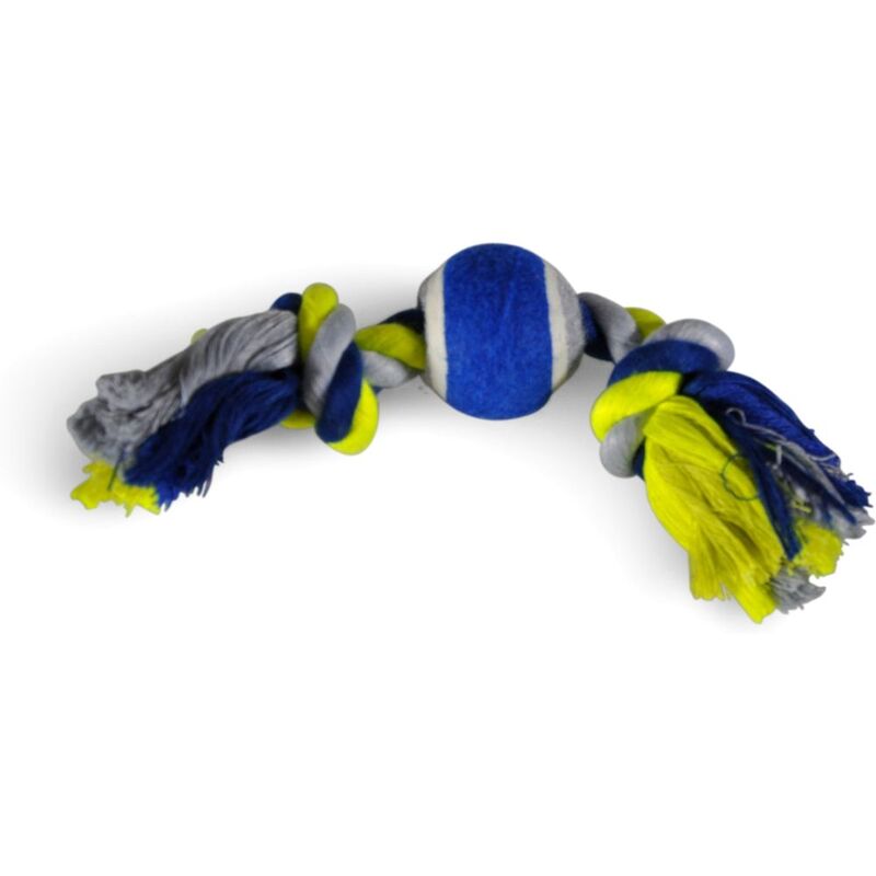 Vadigran Cotton Rope 2 Knots + Tennis Ball Blue/Yellow 20cm