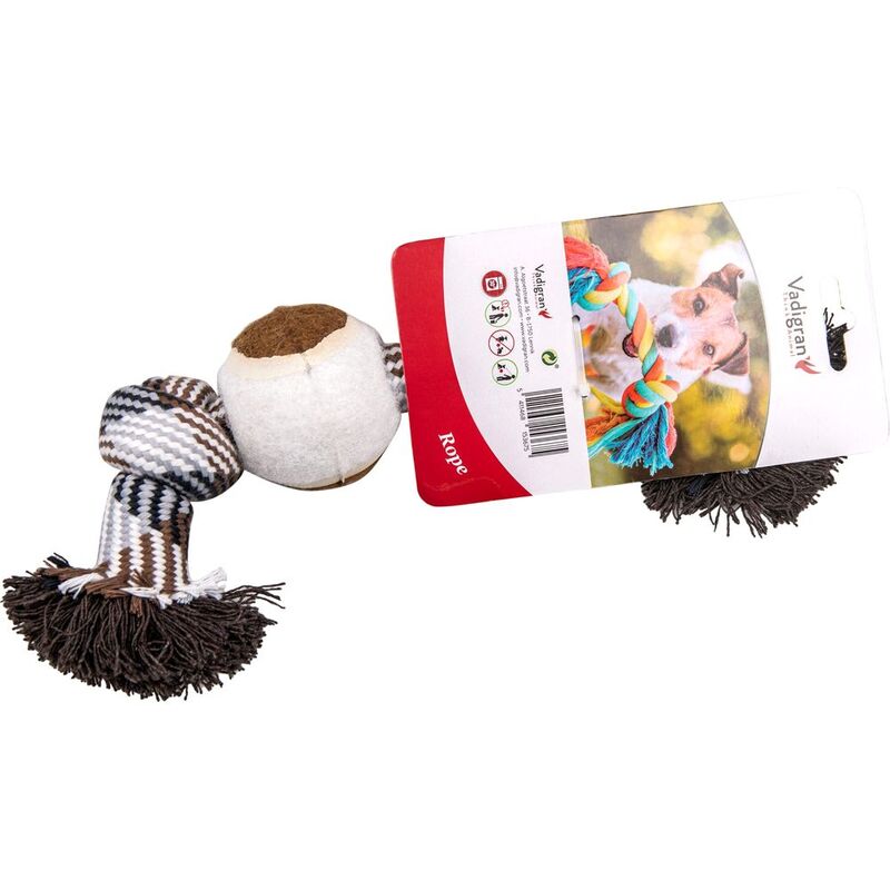 Vadigran Cotton Rope 2 Knots + Tennis Ball Brown 30cm