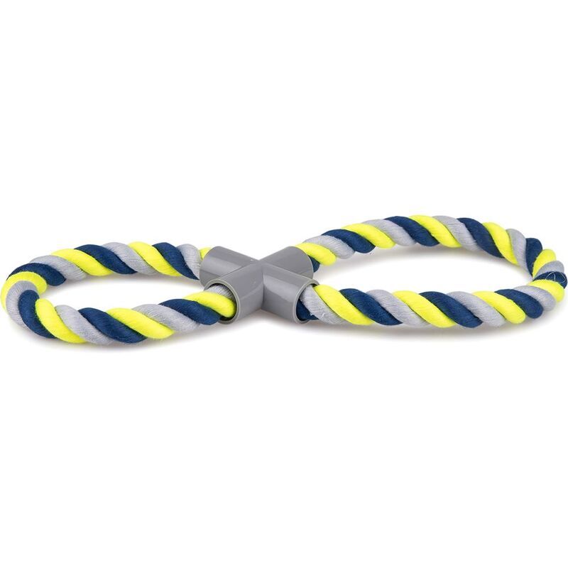 Measuring approximately 35cm in length, the cotton rope is shaped like the number 8, making it easy for your dog to hold and play with. The vibrant blue and yellow colors not only add visual appeal but also make the toy stand out during playtime.