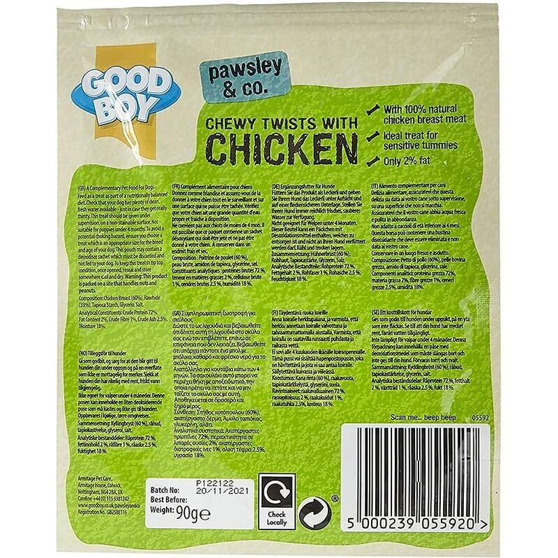 Highly palatable.Chicken wrapped around chewy rawhide.