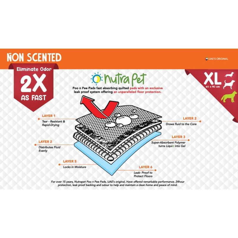 Fast Absorption Technology: Nutrapet Poo N Pee Pads XL are equipped with advanced fast absorption technology that swiftly locks in moisture, preventing any leaks or odors. Experience hassle-free clean-ups and maintain a fresh environment without the mess.