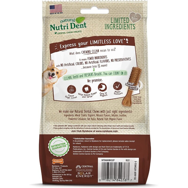 Nutri Dent dental dog treats feature a simple formula with limited ingredients