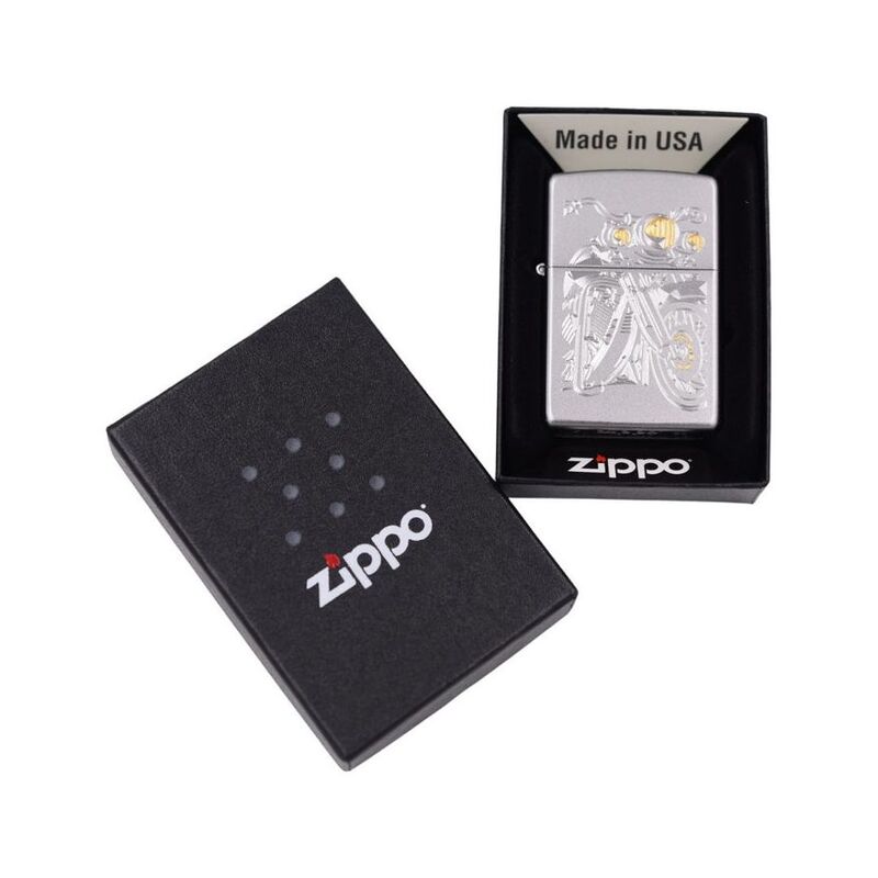 Zippo 205 AE184542 Satin Chrome Motorcycle Windproof Lighter