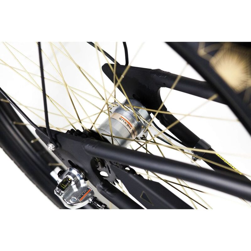 - The whole thing is equipped with a Shimano Nexus 3-speed planetary hub with foot brake and incredibly soft and stylish tires