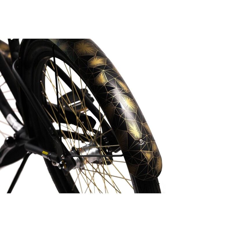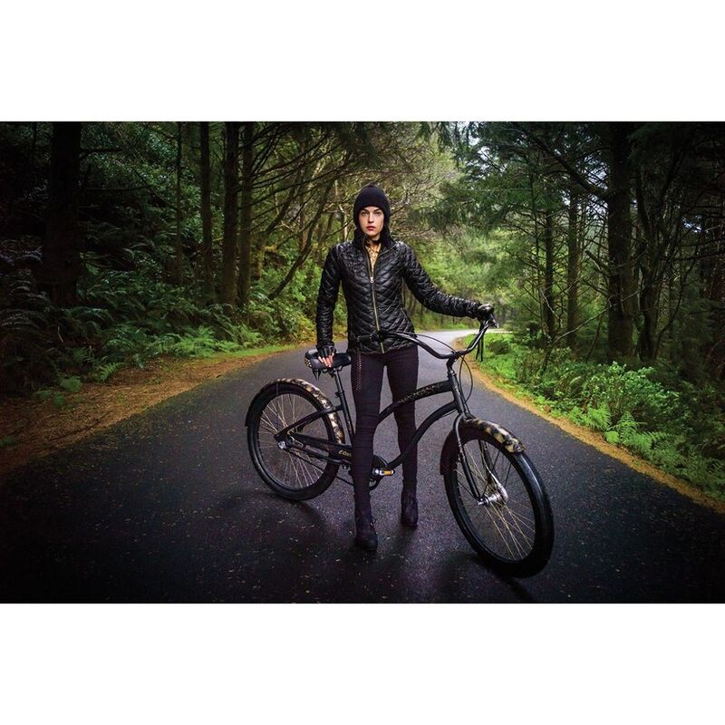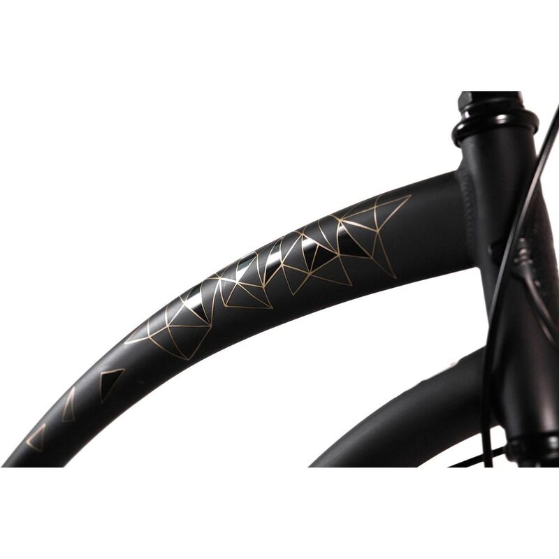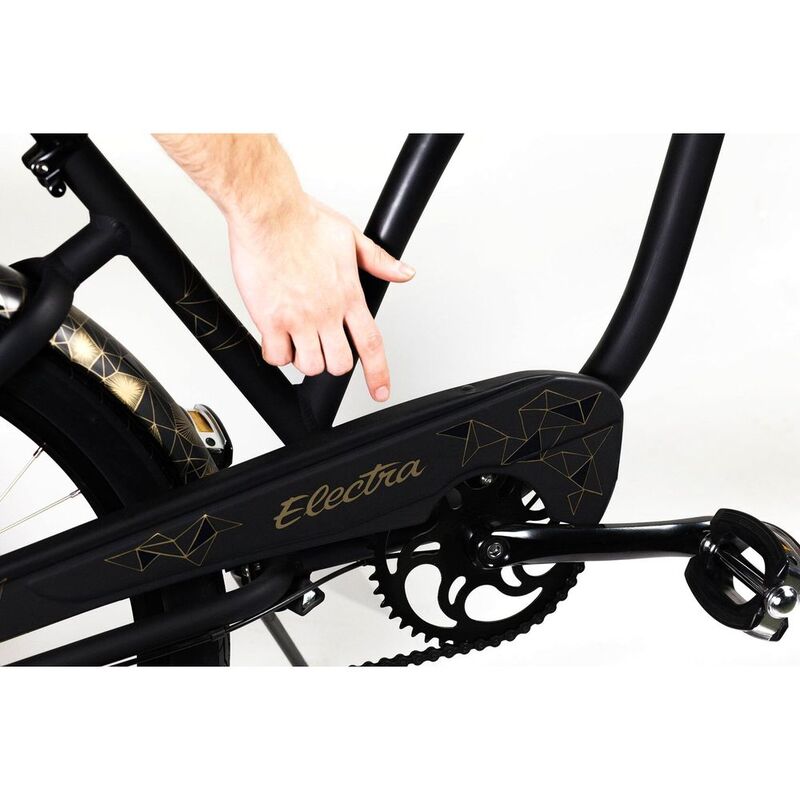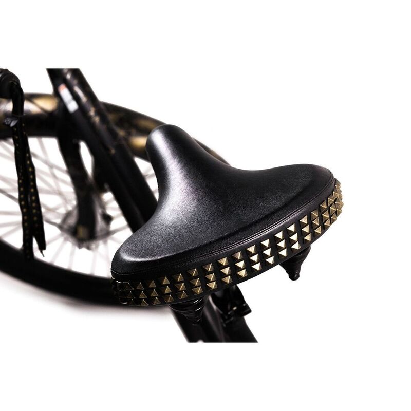 The Glam Punk 3i Cruiser is a trendy bike for girls who are over pink florals and girly things. Black matte cruiser with gold spokes and geometric patterns, zippered leather grips and rivets on the saddle represent an unusually stylish model for sophisticated and strong girls.