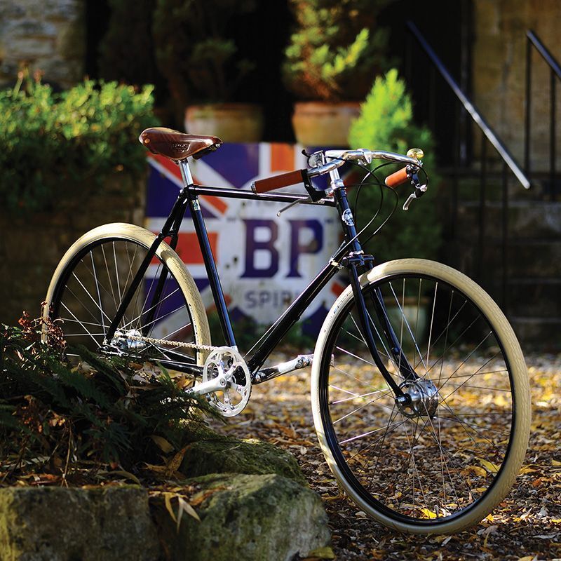 The Guv’nor is a revival of one of Pashley’s oldest designs, the 1930s Path Racer, but updated to cope with the demands of modern life. Legendary Reynolds 531 steel is used by craftsmen to produce a frame with a classic slack geometry, which provides you a dynamic yet natural riding position aided by the inclusion of authentic North Road handlebars.It is not only unique in its ride quality but in its aesthetic, exuding an elegance that hearkens back to the simple beauty of the original design. From the gold lined black alloy Westwood rims to the Brooks B17 leather saddle that has graced the best racing cycles for over 100 years, every aspect of the Guv’nor has been carefully selected to evoke the glory of path racing history. Add to this the benefits of Sturmey Archer hub brakes, enclosed to be reliable in all weathers, and puncture resistant Schwalbe tyres and the Guv’nor becomes the epitome of refined British road cycling with the very best componentry.