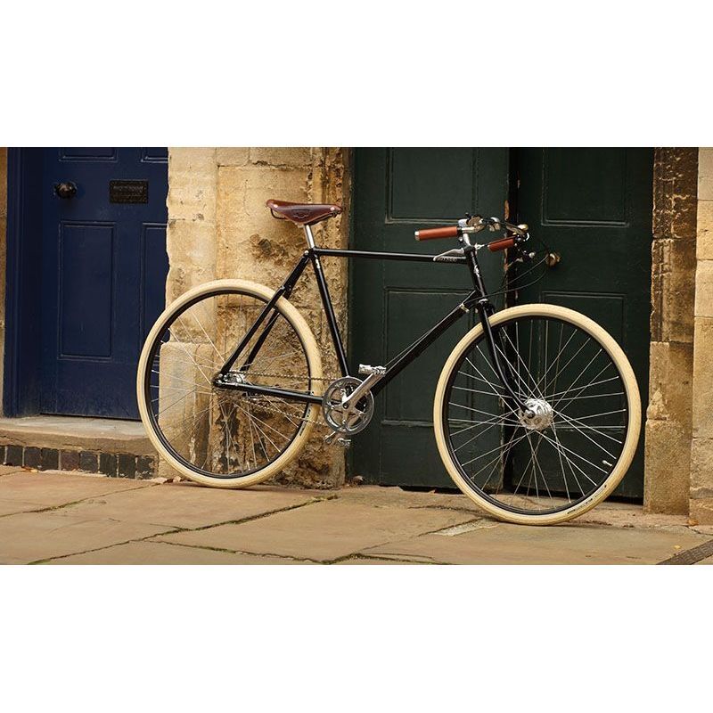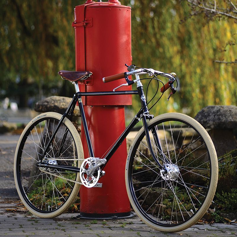 The Guv’nor is a revival of one of Pashley’s oldest designs, the 1930s Path Racer, but updated to cope with the demands of modern life. Legendary Reynolds 531 steel is used by craftsmen to produce a frame with a classic slack geometry, which provides you a dynamic yet natural riding position aided by the inclusion of authentic North Road handlebars.It is not only unique in its ride quality but in its aesthetic, exuding an elegance that hearkens back to the simple beauty of the original design. From the gold lined black alloy Westwood rims to the Brooks B17 leather saddle that has graced the best racing cycles for over 100 years, every aspect of the Guv’nor has been carefully selected to evoke the glory of path racing history. Add to this the benefits of Sturmey Archer hub brakes, enclosed to be reliable in all weathers, and puncture resistant Schwalbe tyres and the Guv’nor becomes the epitome of refined British road cycling with the very best componentry.