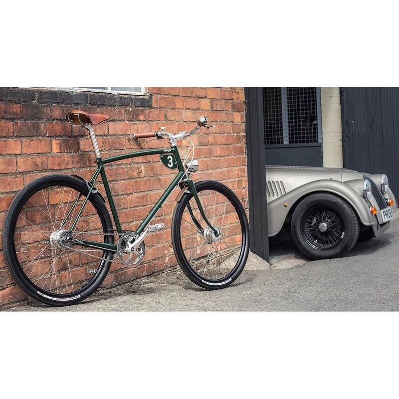 The Pashley-Morgan 3 also takes its inspiration from the original 'path racer' bicycles of the early 1900s, with its iconic GB dropped handlebars selected for a more dynamic racing position. It's multi-surface tyre also increases its usability allowing you to speed over varying terrains. Its all-enclosed Sturmey hub brakes ensure powerful stopping in all weathers, with its lightweight 3 speed hub gears set to let you tackle undulating terrain while keeping a good pace around the city.