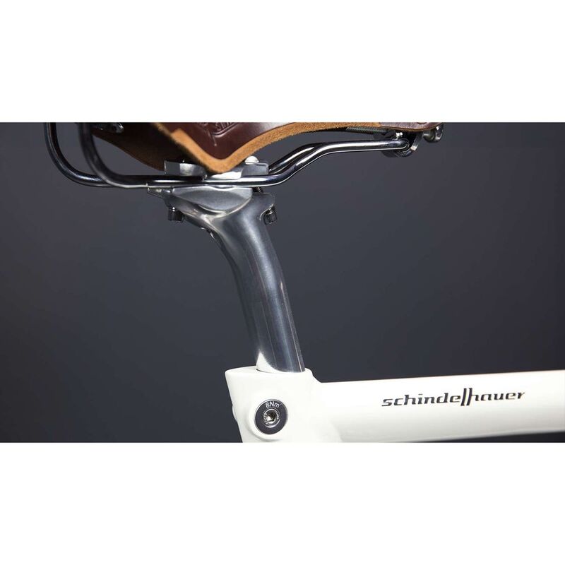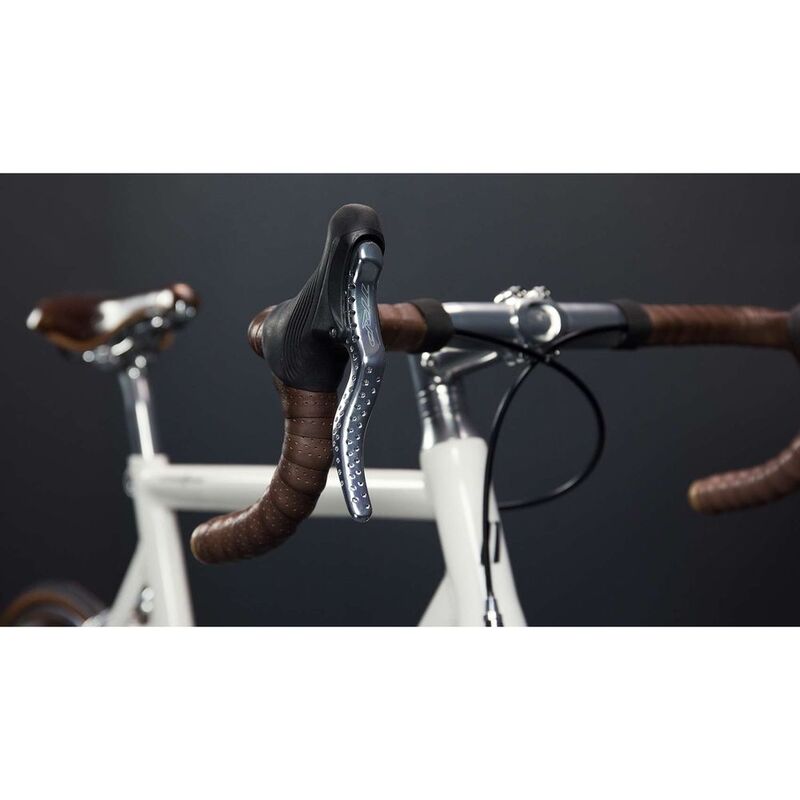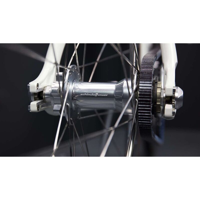 Consider the drop bar option and explore the city streets in smooth and sporty style. Brooks handlebar tape and saddle are high quality elements with an elegant look and brilliant feeling that make the Siegfried Road a perfect choice for training. Schindelhauer's core design points are all about finesse and simplicity supported by the effective Gates Carbon Drive CDX CenterTrack belt. You can ride the bicycle either fixed or single speed with the flip-flop hub.