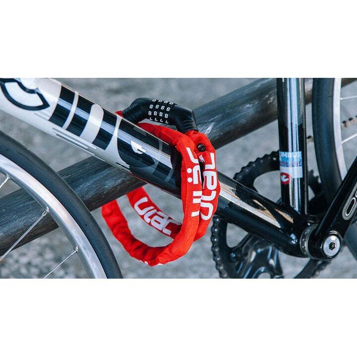 The only 5 mm chain combination lock in the Neo Chain collection. High quality nylon sleeve in 9 colors coats the steel chain to provide security to your bicycle. It can be attached to the top tube and is ideal for urban rides.