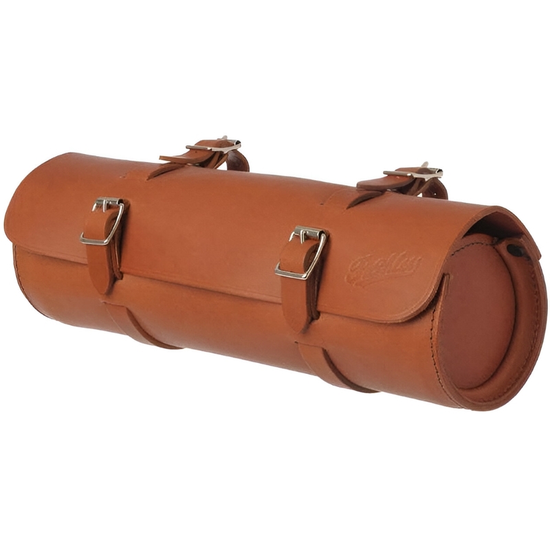 An effortlessly smart accessory, the Bottle Bar Bag takes the front part of the bicycle. Attached to the handlebars and stem using traditional leather straps and buckles, this original leather bag illustrates the very best of British craftsmanship.
