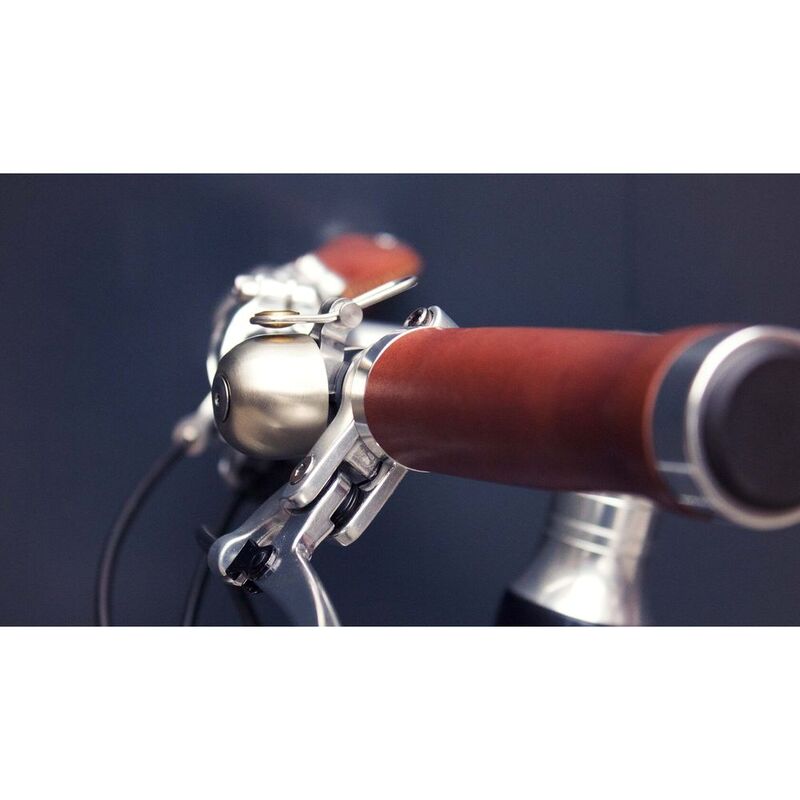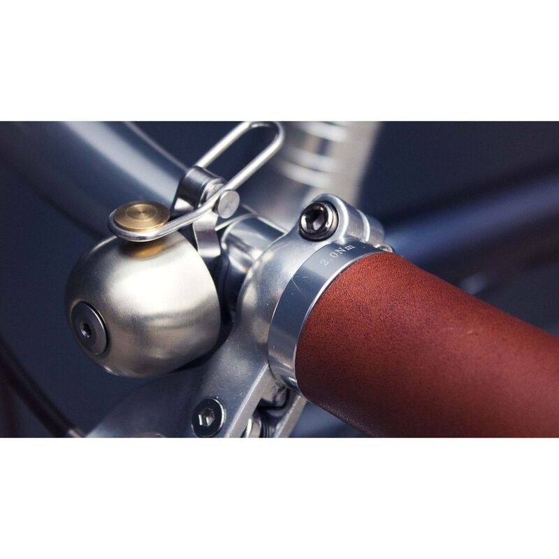 Laconic design and a solid tone define the ideally manufactured bell. Brass and stainless-steel are the main materials making this bell a perfect accessory to Scjindelhauer bikes. The construction allows a left and right assembly on handlebars. Handmade in the USA.