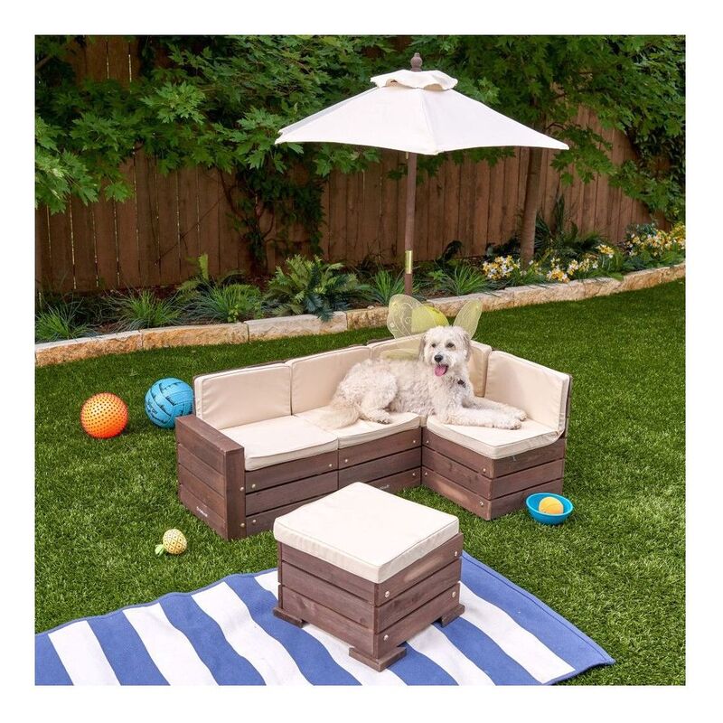 Kidkraft Outdoor Sectional Ottoman & Umbrella Set Bear Brown & Beige