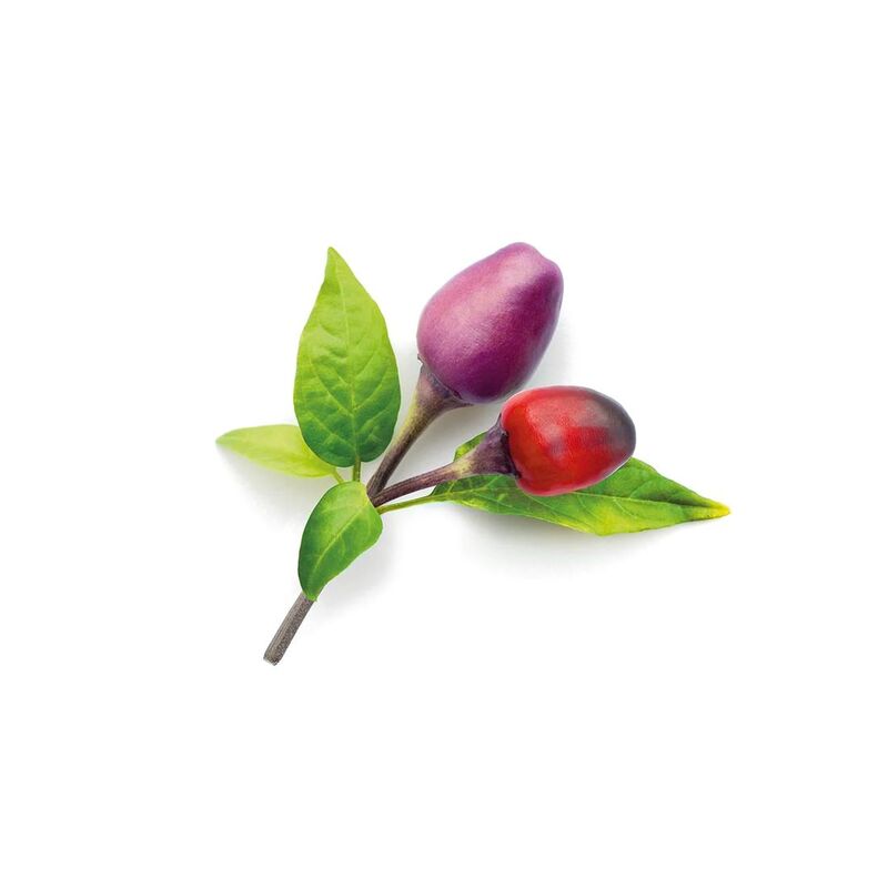 Purple chili has very attractive white flowers with purple edges. Its fruits ripen from vivid purple to bright red. Fresh chili peppers, red, purple or green, are a rich source of vitamin-C. Chilis are also great sources of antioxidants like vitamin A, and flavonoids like beta carotene, alpha carotene, and many more.
