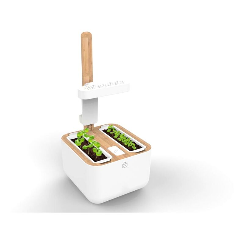 The LED growth lamps ensure faster growth and faster aroma development of your plants. The lighting is automatically controlled: it switches on for 16 hours a day and switches off for 8 hours a day to imitate the natural cycle of plants. Best of all, the compact and slim design of the Botanéo Eylo fits onto any kitchen counter.