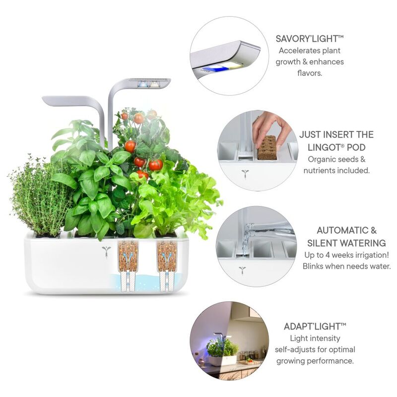 Grow your aromatic herbs, edible flowers, and baby vegetables all year round without any effort.