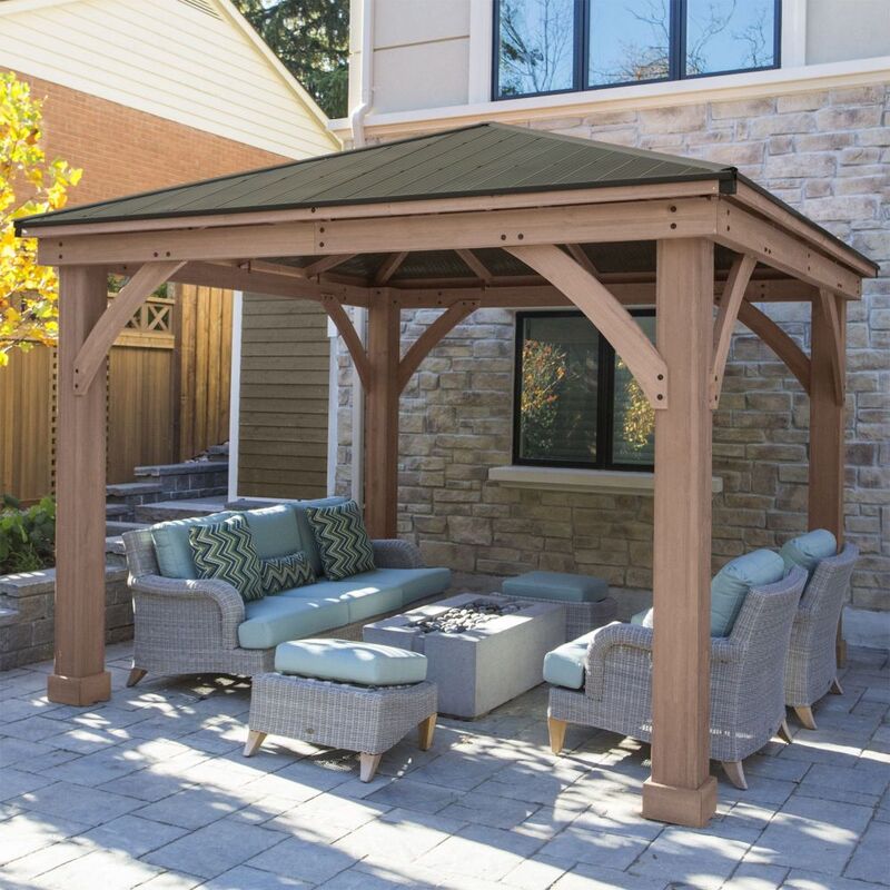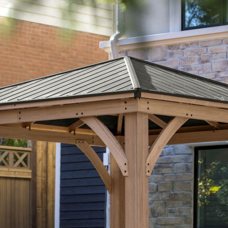 Yardistry Wood Gazebo With Aluminum Roof - 12X12 Ft