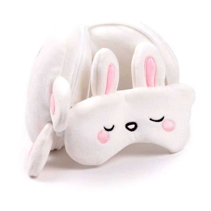 Relaxeazzz Frances and Rabbit Plush Travel Pillow & Eye Mask