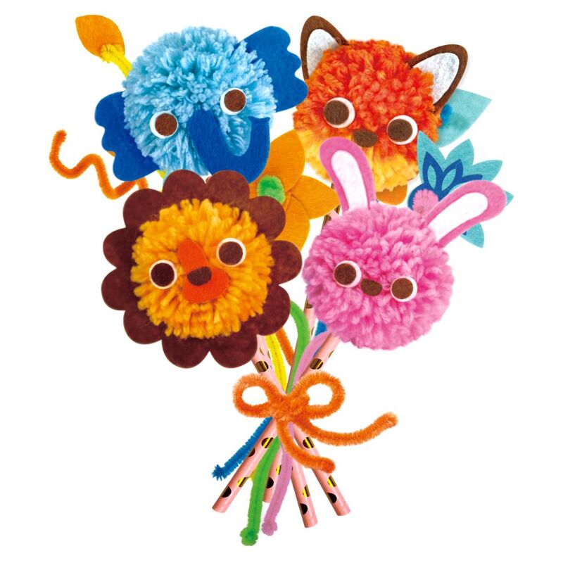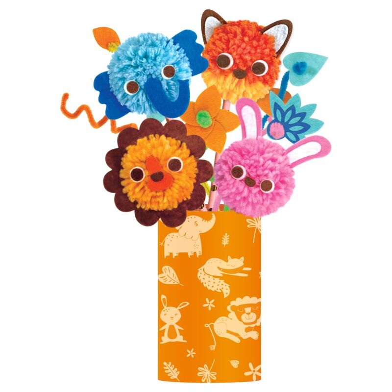 The Pom Pom Bouquet is a fun activity for kids to make a beautiful, animal-themed bouquet. Complete with pipe cleaners, pre-cut felts and felt stickers, following the easy step-by-step instructions, kids can trim and tie coloured yarn into cute, little pom-poms. A perfect work of art to keep for rooom decoration or to give as a gift.