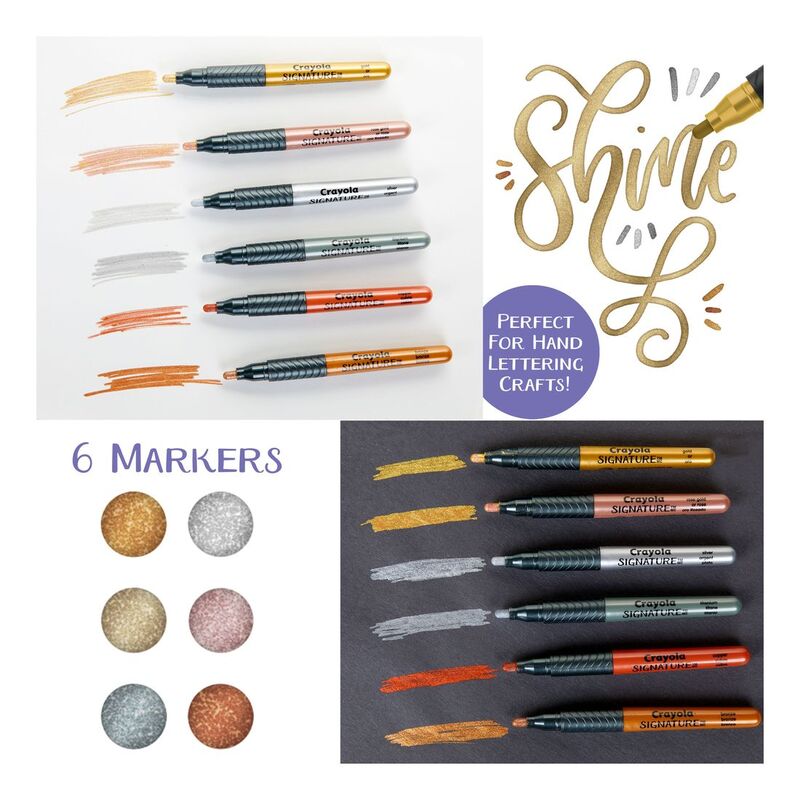- Create: Crayola Signature metallic Paint Markers offer lustrous, shiny metallic effects in a smooth flowing marker. They make a perfect addition to your pencil case or art supplies