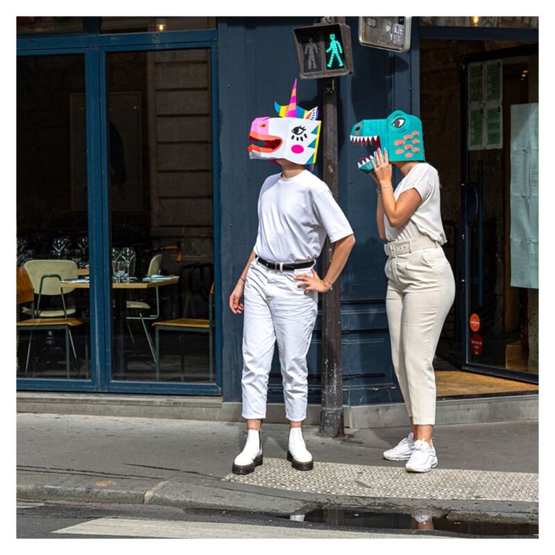 In its large pocket, this cardboard mask delivered flat is to assemble yourself.
