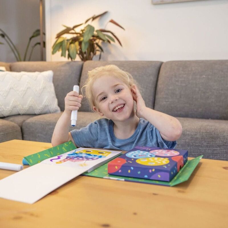 Each set contains everything you need in one sturdy, self-contained box, with a magnetic flap to keep the contents safely stored. Designed for easy portable play, Dot Paint Set is an engaging activity that provides a great alternative to screen time - helping parents unplug kids.