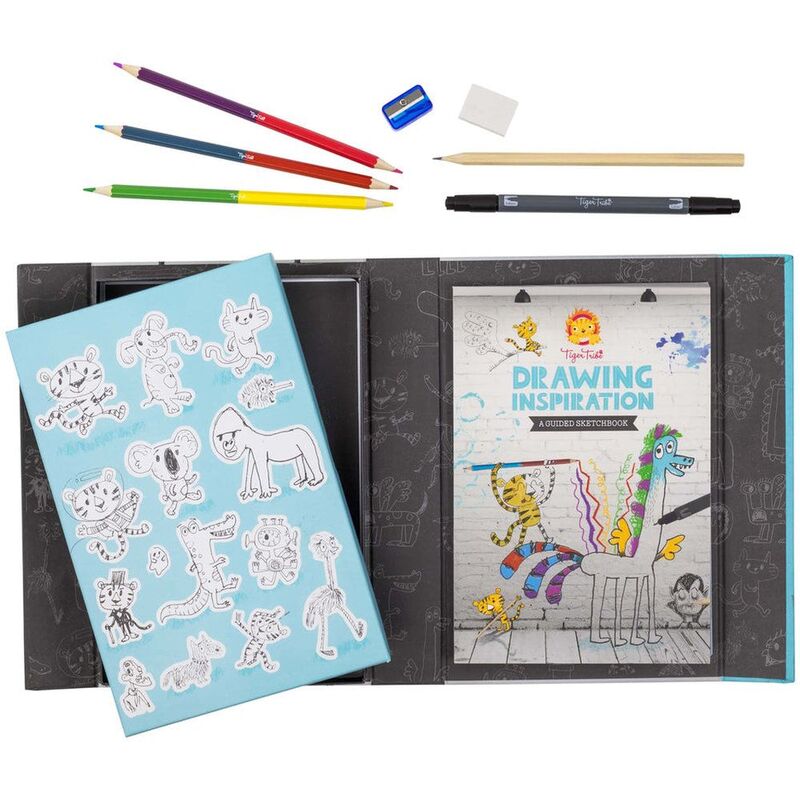 Filled with all the art materials required for sketching and a guided sketchbook that comes with a tour guide - a familiar, somewhat ‘scribbly’ Toby the Tiger. Toby cheers kids on as they move through the collection of inspiring prompts and challenges, all designed to get creative juices flowing, pencil grips loosened and to encourage personal style to shine through.