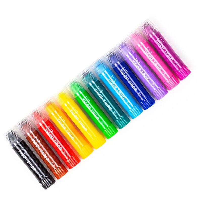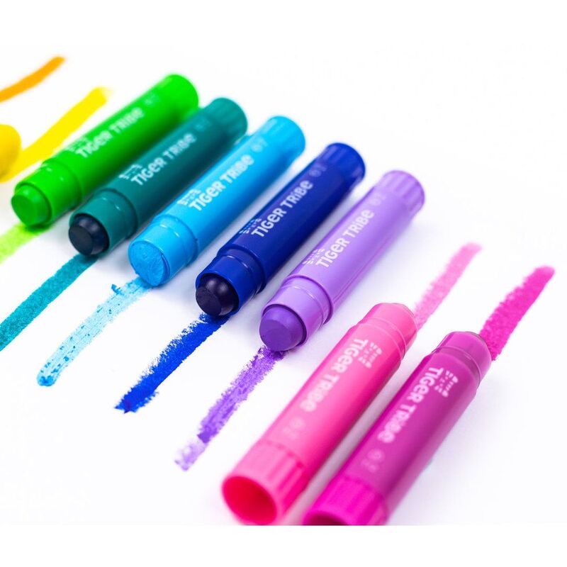 A fun set of twelve vibrant colouring-in tools for kids. Our classic Silk Crayons - made mini! Silky smooth like a pastel with colours more vivid than a standard wax crayon, the satisfying silky feel of these crayons deliver super vibrant results. Extend playtime with window drawing or bathroom tile art, rock painting, watercolour art and more. Each mess-free Mini Silk Crayon is housed in a twist-up tube to help keep little fingers clean.
