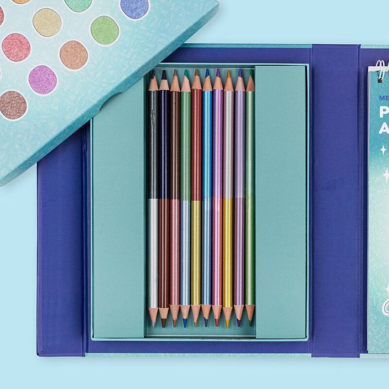 - Each set includes a technique manual, 20 colouring pages on premium paper, 9x double-ended artist-quality metallic pencils (18 colours) and one blend and shade pencil (2 colours)