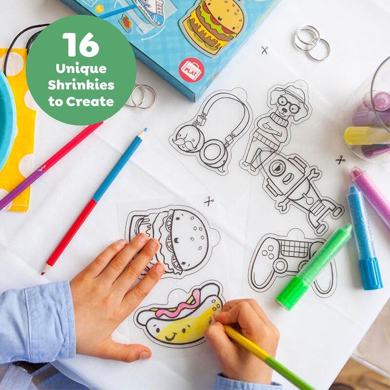 Each set includes everything you need to make your own fabulous shrink-art jewellery. Simply colour the beautifully illustrated pre-cut designs, pop them in the oven and watch them magically shrink to 40% of their original size, in front of your eyes! As your charms shrinks the colours become more intense.