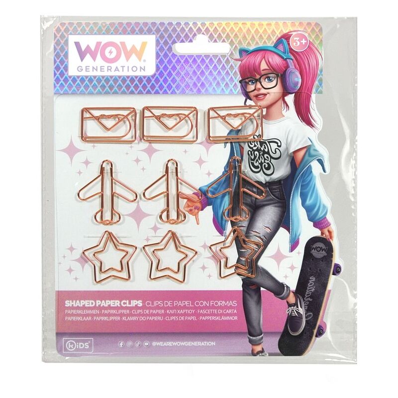 Keep your notes and notes neat and tidy in style with the WOW Generation 9-pack of paper clips. Featuring fun and unique shapes for WOW girls, these clips come in Alana, Megan and Valentina styles, each with different designs. Organize your important notes and add a touch of fun - get your pack of decorative paper clips and keep everything in order!
