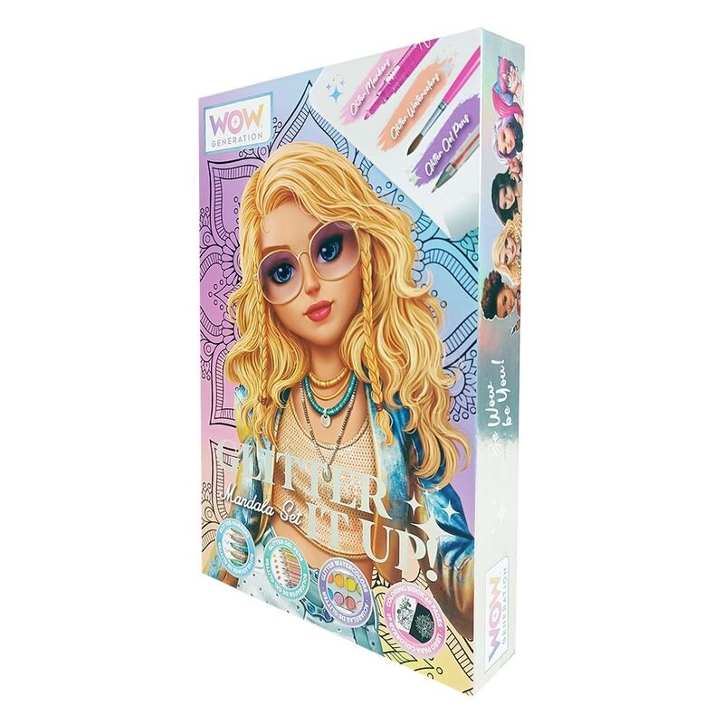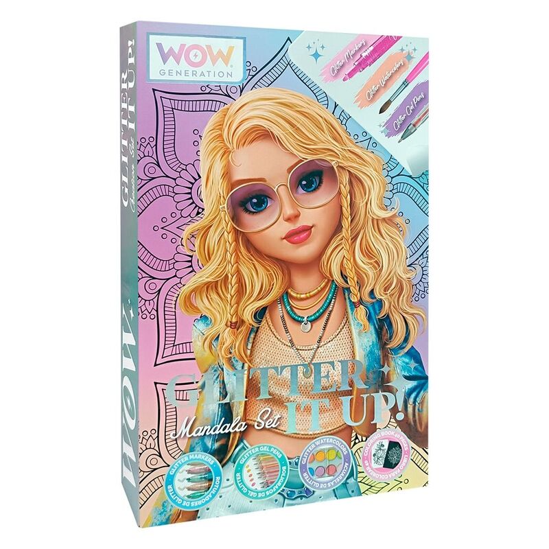 Explore beauty and calm with our Wow Generation Mandala Set. This hardcover binder contains 40 sheets, 20 in white and 20 in black, with specially designed designs to create a wide variety of mesmerizing mandalas. With our kit, you can add a touch of sparkle to your creations. It includes 5 glitter markers, 5 glitter gel pens and 10 glitter watercolors to bring your designs to life with sparkling glitter. Whether you're a beginner or an expert in the art of mandalas, our Mandala Set gives you everything you need to let your imagination run wild and create stunning works. Immerse yourself in the world of creativity and find inner peace as you create your own masterpieces.