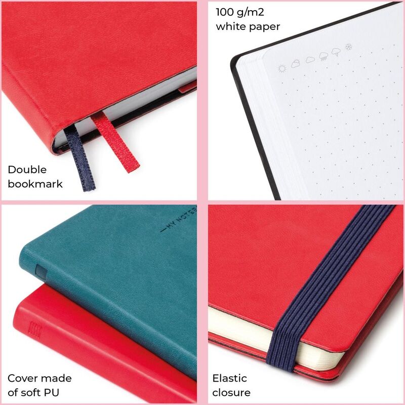 Get organised and get creative with the Legami My Notebook - Dotted - Bougainvillea Cover - Medium. With numbered pages, an index, world map and lots of helpful layouts, this notebook has everything you need to start new projects and plan your days. This product is made of material from well-managed, FSC® certified (FSC-C154586) forests and other controlled sources.