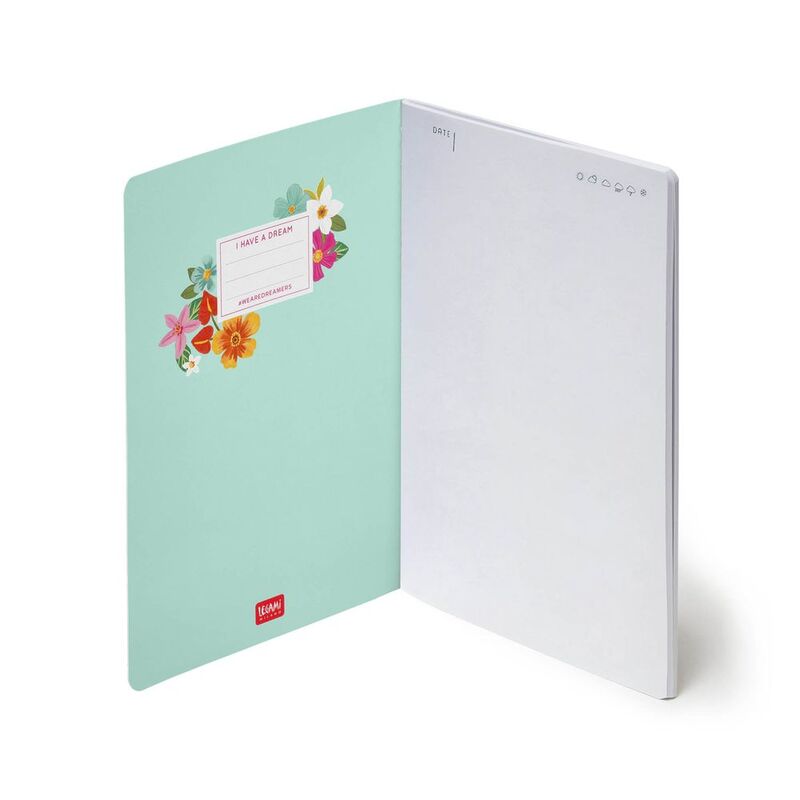 Feel happy with the Legami Flowers Notebook with plain pages - Medium. The A5 format is the perfect way to set your creativity free at home, school or the office.