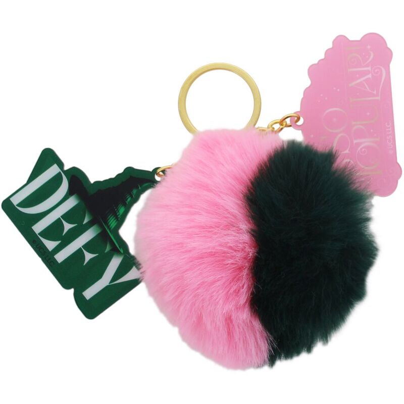 Add style to your keys with this super cute Wicked keyring. It has a two-tone pink and green pom pom as well as a ‘Defy’ and ‘So popular’ acrylic charms. All of these on a gold split ring making it easy attachable. Once you got this keyring you will never lose your keys again as you will find them easily in any bag.