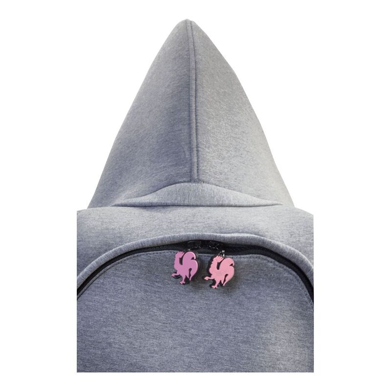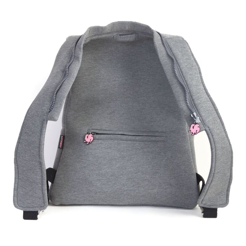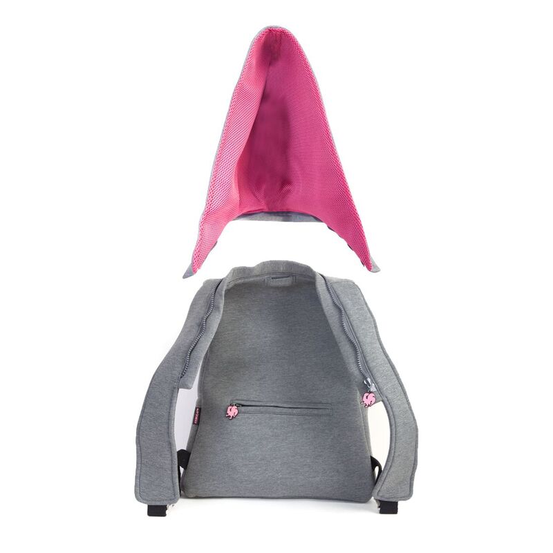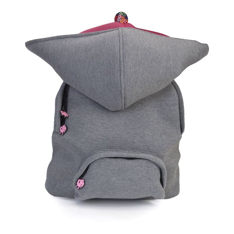 Morikukko Kids' Small Hooded Backpack - Grey/Fuchsia