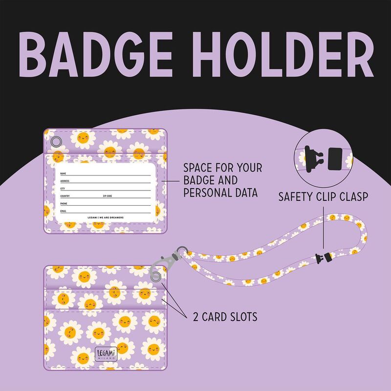 You know that sinking feeling when you make it to the office on time, only to realise you've left your name badge at home? Legami's Badge Holder Daisy is more than just an accessory, it's a real lifesaver. It has a clear slot for your name badge, two more slots on the back for credit cards, and a convenient lanyard with a clip. Put an end to false starts in the mornings.
